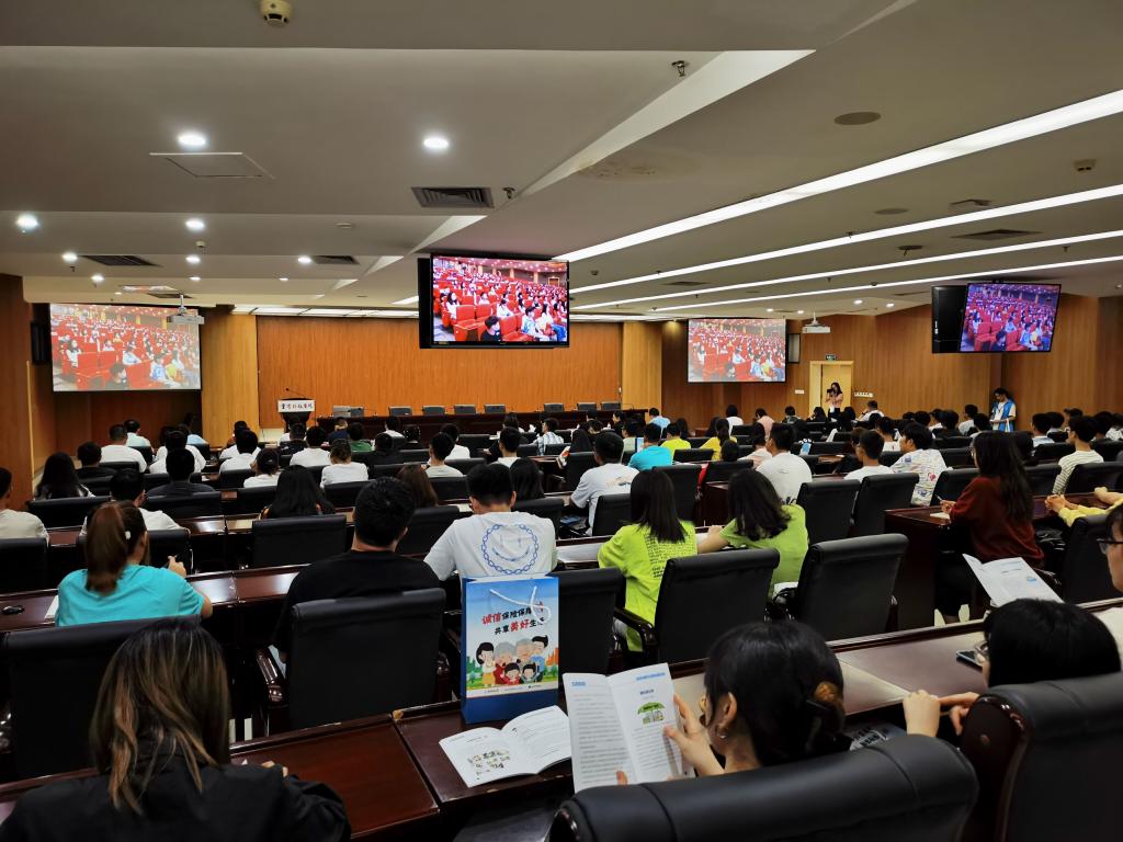 此次活动围绕“理性消费 远离诈骗”主题,采取线上、线下相结合,同步开展的方式进行。当天下午,在图书馆906会议室,施金良和学工部、宣传部、校团委等部门负责人、辅导员及学生代表近200人共同观看了“送金融知识进校园”活动启动仪式网络直播。随后,与会人员还聆听了重庆银行业保险业金融知识教育宣传团队的专家关于不良“校园贷”、电信网络诈骗、个人征信知识、保险基础知识、互联网保险投保知识等专题讲座。