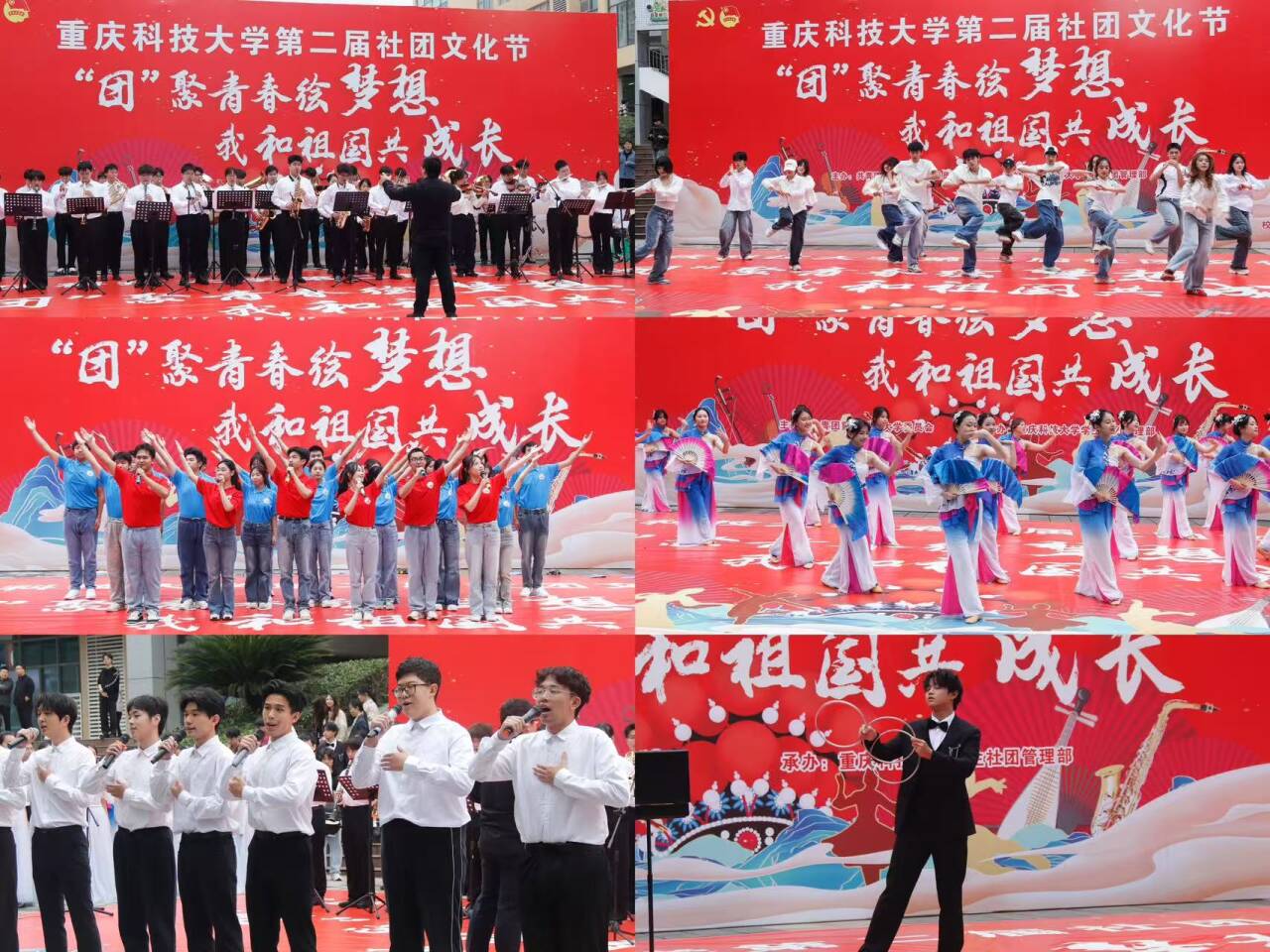 开幕式上,黎德龙宣布重庆科技大学第二届社团文化节正式开幕。随后,大学生艺术团与各学生社团联袂献上的精彩节目轮番登场,现场氛围热烈高涨。管乐大合唱气势磅礴,激昂旋律奏响爱国强音;民族舞蹈轻快灵动,优美舞姿展现蓬勃青春活力;诗朗诵声情并茂、抑扬顿挫,深情抒发新时代青年的家国豪情;街舞表演动感炸裂,酷炫舞姿瞬间点燃全场热情;魔术节目悬念迭起、妙趣横生,引得现场掌声与喝彩声此起彼伏。整场演出内容丰富多元、亮点纷呈,全方位展现了重科学子多才多艺、奋发向上的精神风貌。