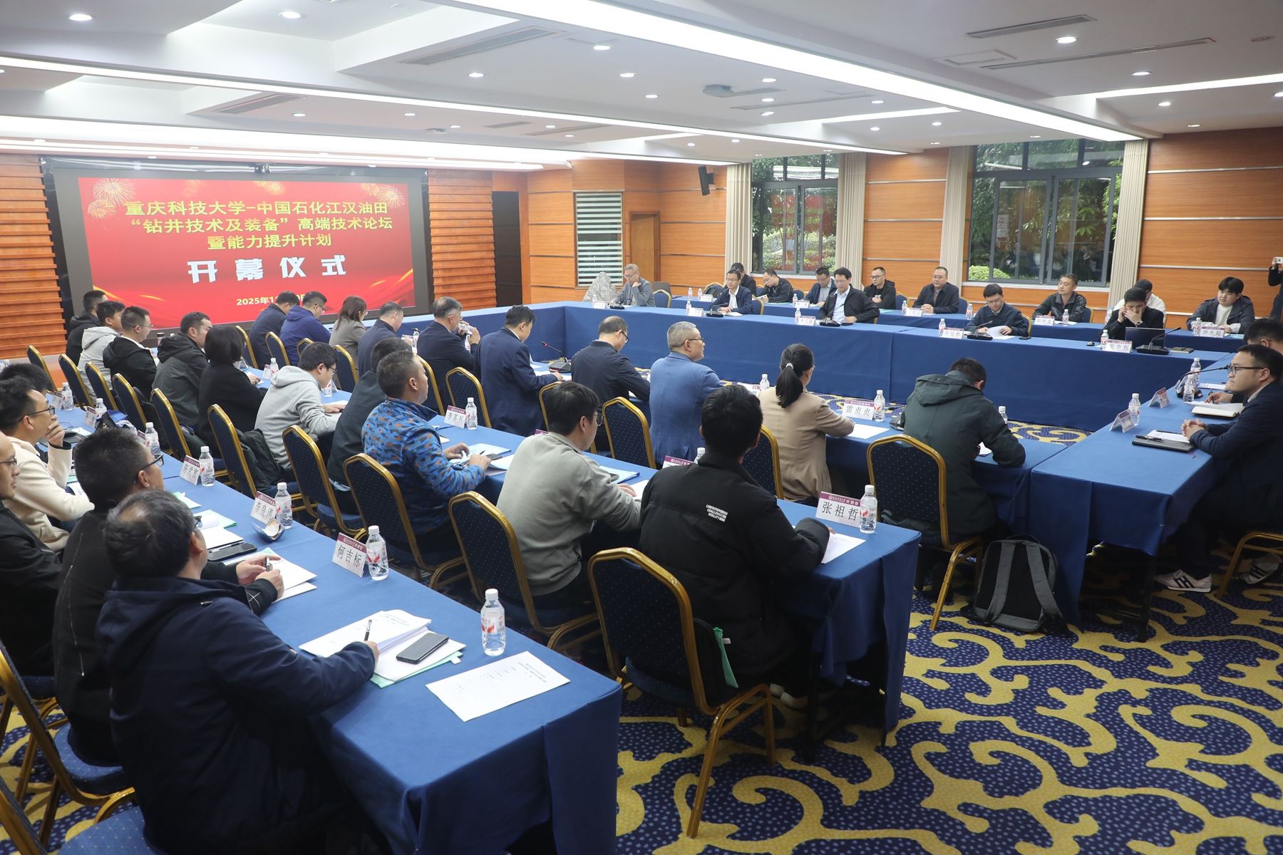 11月10日下午,重庆科技大学与中国石化江汉油田联合举办的“钻井技术及装备”论坛暨技术交流系列活动在我校办公楼105、205会议室先后召开。中国石化江汉油田、中原油田、胜利油田等企业代表,长江大学专家,以及我校副校长吴松,科技处、机械与智能制造学院相关负责人和师生代表等40余人参会。活动由机械与智能制造学院院长吕中亮主持。