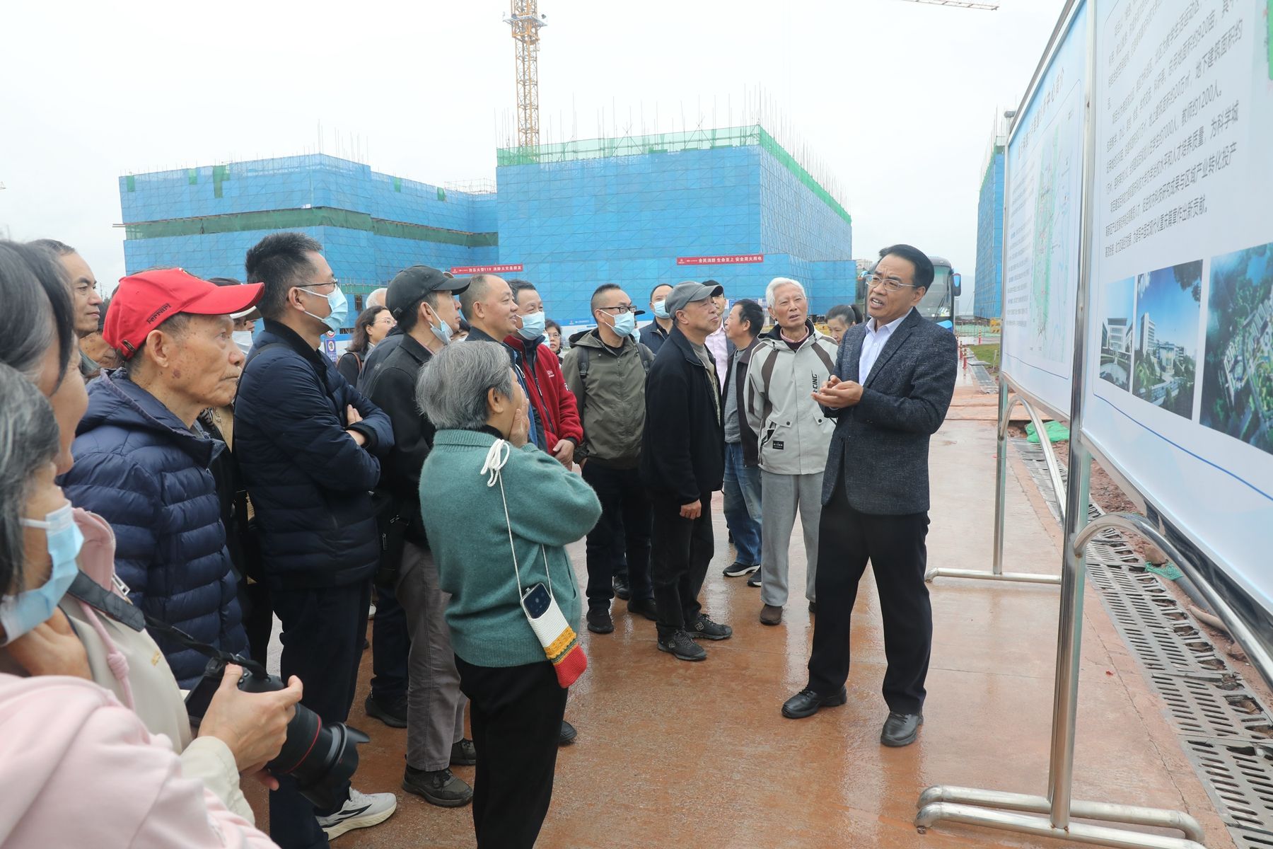 在实地参观环节,副校长朱永利在智慧创新中心建设工地现场向老党员介绍建设情况,重点说明了老党员关心的建设目标、功能定位、工程进展及资金筹备等内容。当前,学校正处于推进高质量发展的关键时期,智慧创新中心建设现场一派繁忙景象,让老党员们直观感受到学校高质量发展的强劲势头。参观过程中,老党员们兴致盎然,边听边看,不时驻足询问,对学校快速发展的态势和阶段性成果深感自豪与欣慰。老党员们还结合自身丰富阅历和经验,围绕学校“十五五”规划编制畅所欲言,积极建言献策,从学科布局优化、师资队伍建设、校园文化传承、内部治理提升等角度提出了许多具有建设性的意见和建议,并表达了对学校“爬坡上坎、跨越提升”的殷切期望。