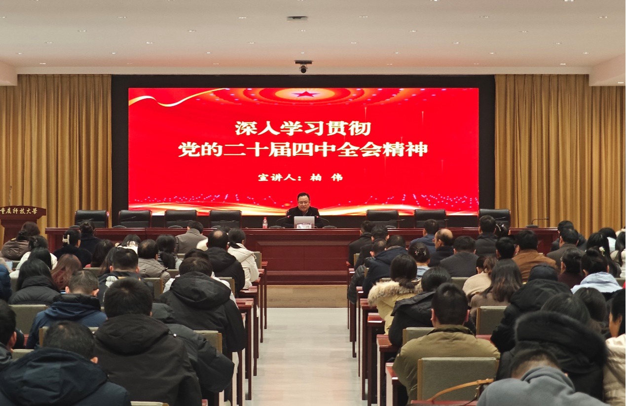 12月16日下午,党委常委、副校长柏伟在教学主楼B117会议室宣讲党的二十届四中全会精神,化工学院、数理学院和外国语学院全体教职工聆听宣讲。