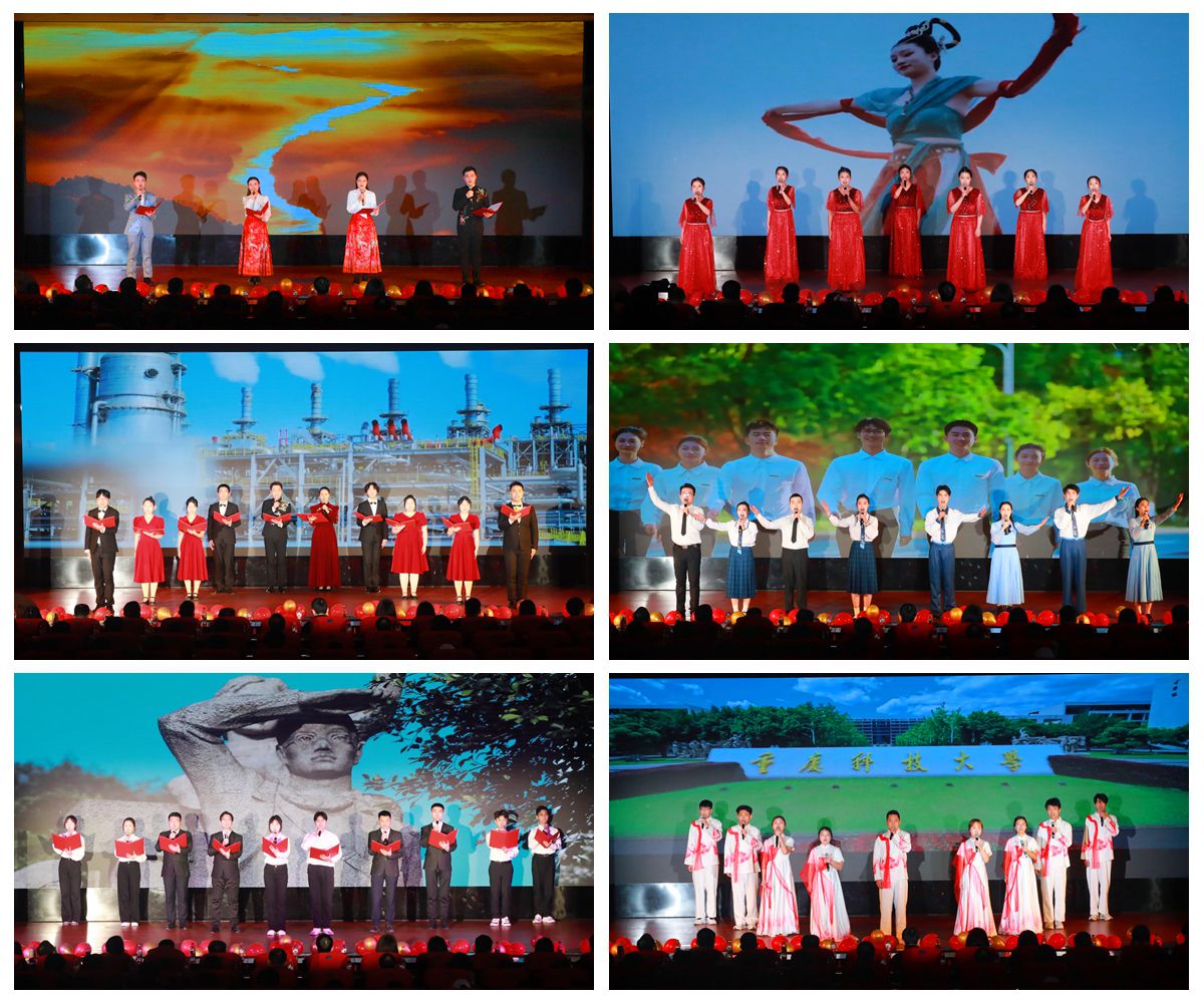 第三篇章《墨海书帆向朝阳》《殷殷嘱托牢记心间青春助力数字重庆》《用石油点亮我的青春》《赴一场光的交响》《在春天的怀抱里》等作品将诗歌与情景剧完美融合,紧扣区域发展战略,彰显了学校服务数字重庆建设的责任与担当,展现了全校师生共同谱写学校发展新篇章的豪情壮志。