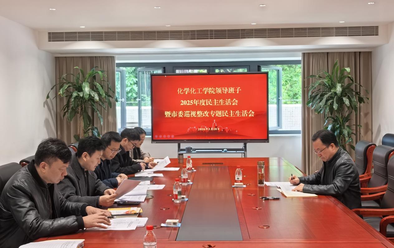 3月20日上午,化学化工学院党总支在办公楼205会议室召开2025年度民主生活会暨市委巡视整改专题民主生活会,学校党委常委、副校长柏伟列席会议并作点评讲话。化学化工学院班子成员参加会议,组织员及工作人员列席会议。会议由化学化工学院党总支书记杨睿宇主持。
