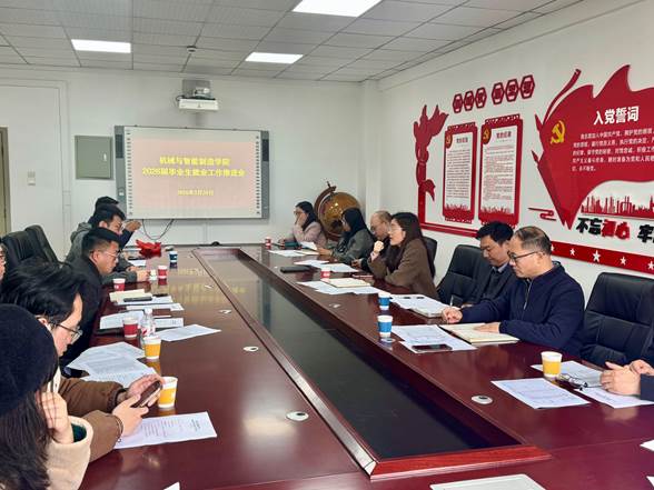 3月20日,机械与智能制造学院召开就业促进会。学院领导班子成员、各系主任、党支部书记及全体毕业班辅导员参加会议。会议通报了各专业就业数据,深入分析了未就业学生的分布情况及就业难点。会上部署了专项行动方案,明确了工作要求,细化了各教学系走访企业的数量指标与时间节点,确保责任到人、任务落地。