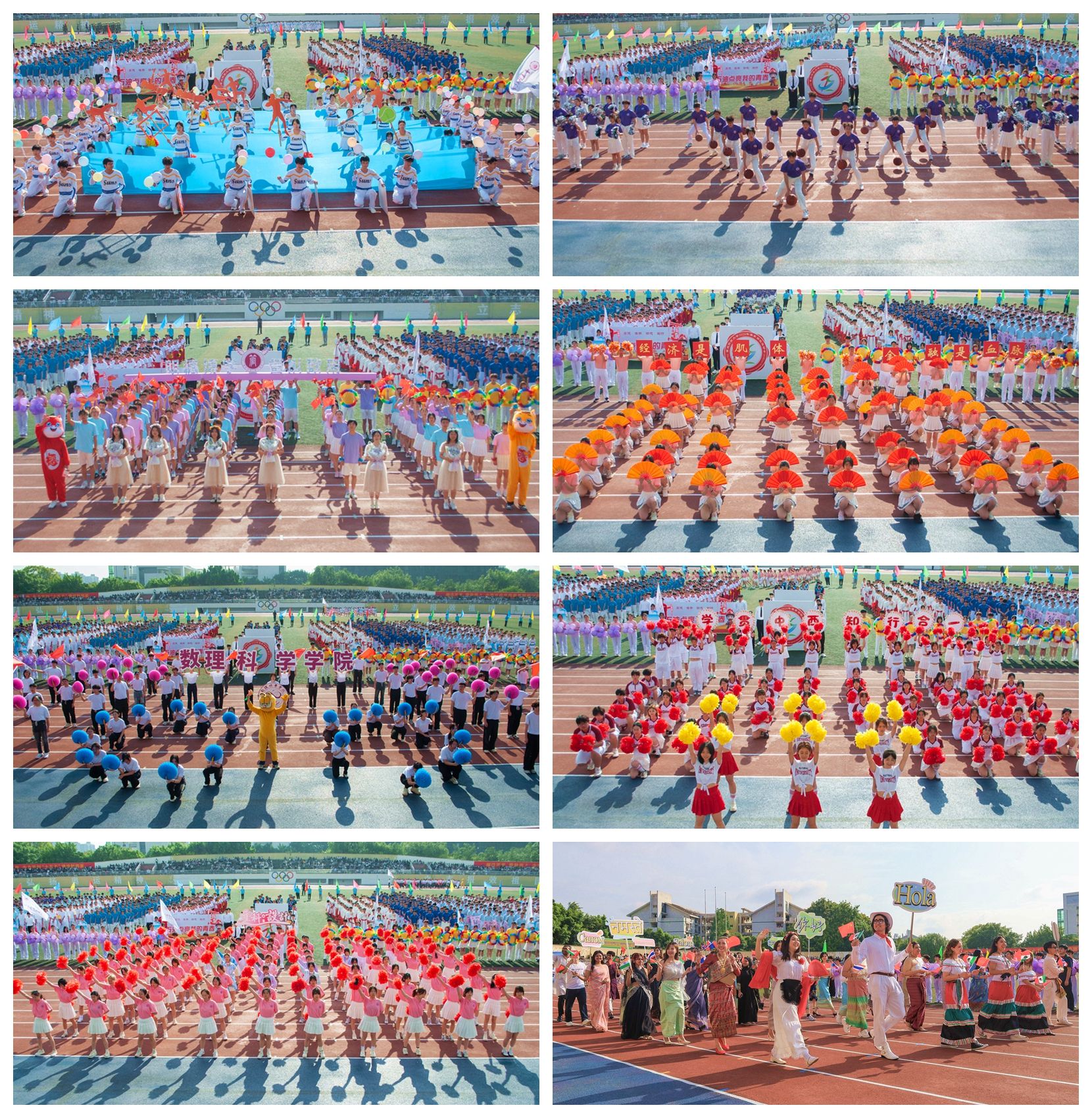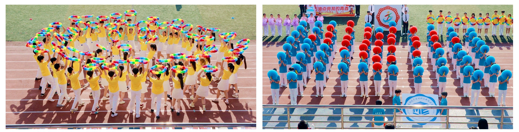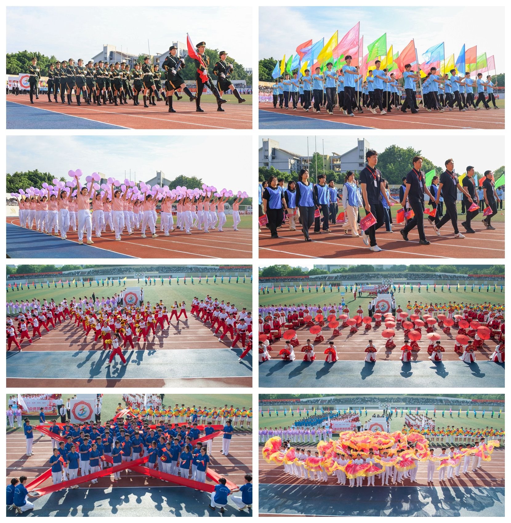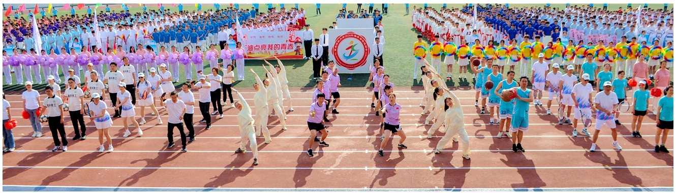 伴随着激昂的《运动员进行曲》,国旗护卫队身姿挺拔、步伐铿锵,拉开了入场式的序幕。会徽、会标方队以鲜红为主调,蓝绿交织,生动诠释了“阳光体育,健康校园”的青春主张;彩旗方队挥舞斑斓旗帜,绘就“策马扬鞭奋蹄疾”的奋进画卷;气球方队手持紫色气球,汇聚成跃动的青春海洋;花环方队步伐轻盈,用芬芳与色彩点燃盛会热情。裁判员方队目光坚定、步履从容,誓言以专业与公正护航赛事。随后,各个学院及教职工方队依次亮相,用富有创意的表演,生动展示了重科师生朝气蓬勃、奋发进取的精神风貌。开幕式后举行了教职工广播体操比赛。