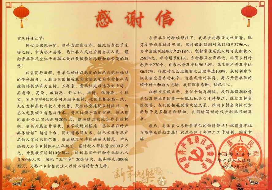 五年间,学校领导先后赴垫江实地调研指导20余次,累计投入帮扶资金800多万元,并选派了原副校长刘上海等9位干部扎根一线。驻村干部们坚持抓党建促振兴,聚焦产业增收,提升治理水平,保障改善民生,切实增强了当地群众的获得感与幸福感,赢得了当地政府的高度评价。