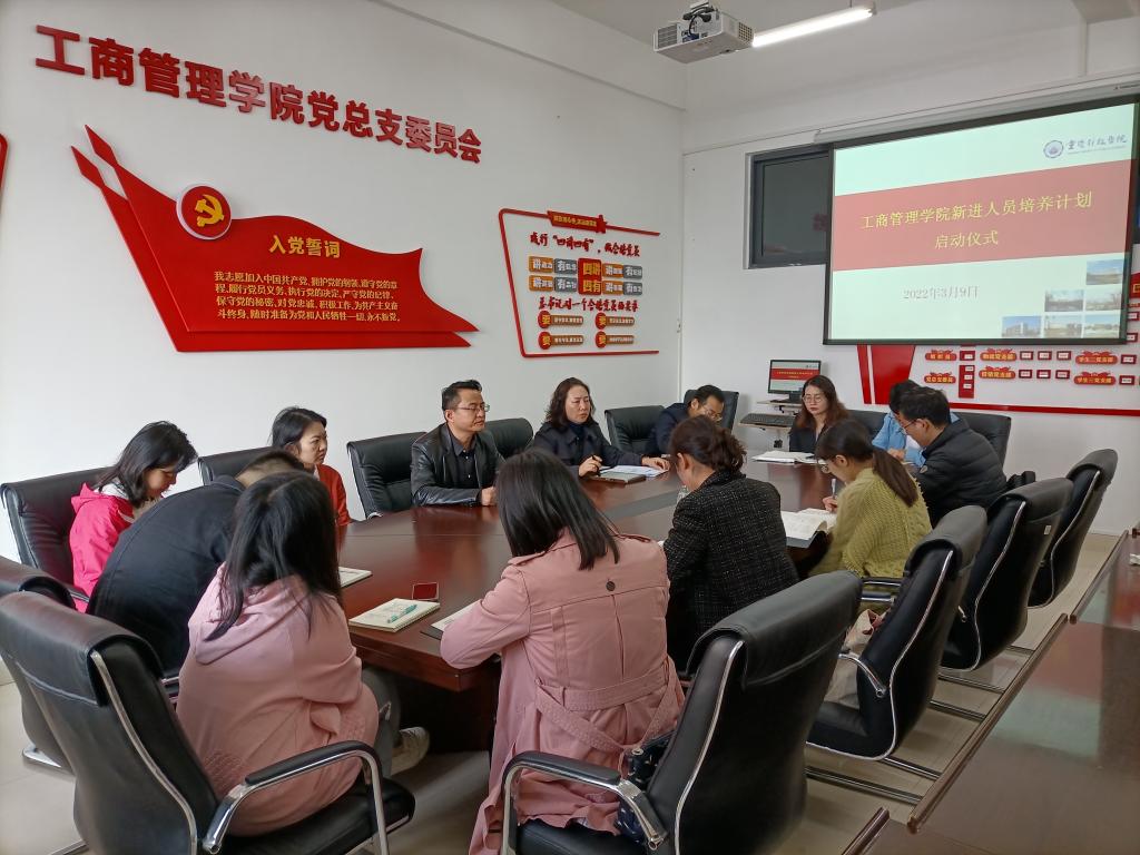 3月9日,工商管理学院新进人员培养计划启动仪式在博学楼F310会议室举行。学院党总支书记江燕玲、院长万玺出席了活动,学院2021年以来新进博士、辅导员,科级干部参加了活动。
