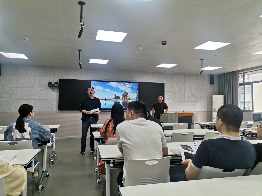 机械与动力工程学院于今年三月完成了精品录播教室建设工作,该教室主要可用于视频录制、线上教学等。为了加强智慧教室服务于教学,为进一步推动学院课程建设工作,增强课堂教学双向互动,机械与动力工程学院于4月27日上午举办“教学项目专项辅导”系列活动之智慧教室使用培训会。会议由学院主管教学副院长何高法主持,邀请了重庆聚全科技有限公司技术员王浩主讲,机械与动力工程学院全体青年教师参加培训。