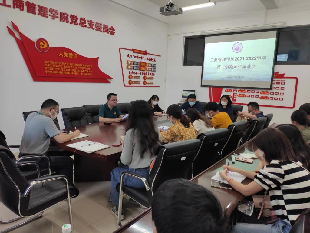 5月11日上午,根据学校研究生教育教学期中检查的要求,工商管理学院在博学楼F310会议室组织召开研究生师生座谈会,会议由学院院长万玺主持,导师代表、任课教师代表、教学秘书、辅导员以及2021级全体研究生参加了座谈会。