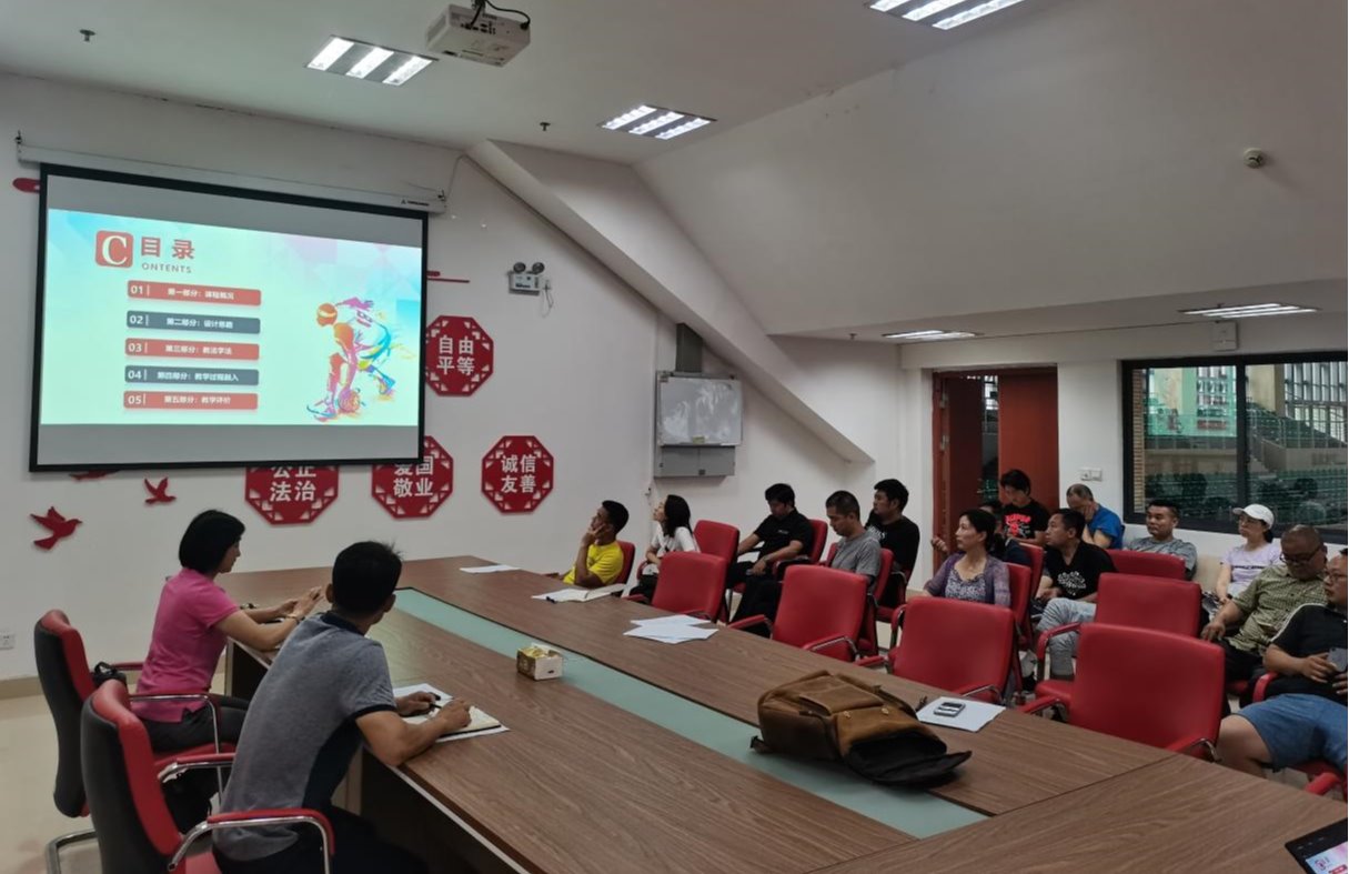 6月1日上午,体育部举行篮球基础课程教学能力提升培训,体育部全体教师参与培训,会议由体育部副部长张莹主持,教师张翼主讲。