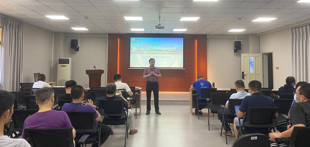 7月6日下午,智能技术与工程学院在逸夫楼I319会议室召开2022年第六次教职工政治学习会,学院全体教职工参会,会议由学院党总支书记都进学主持。