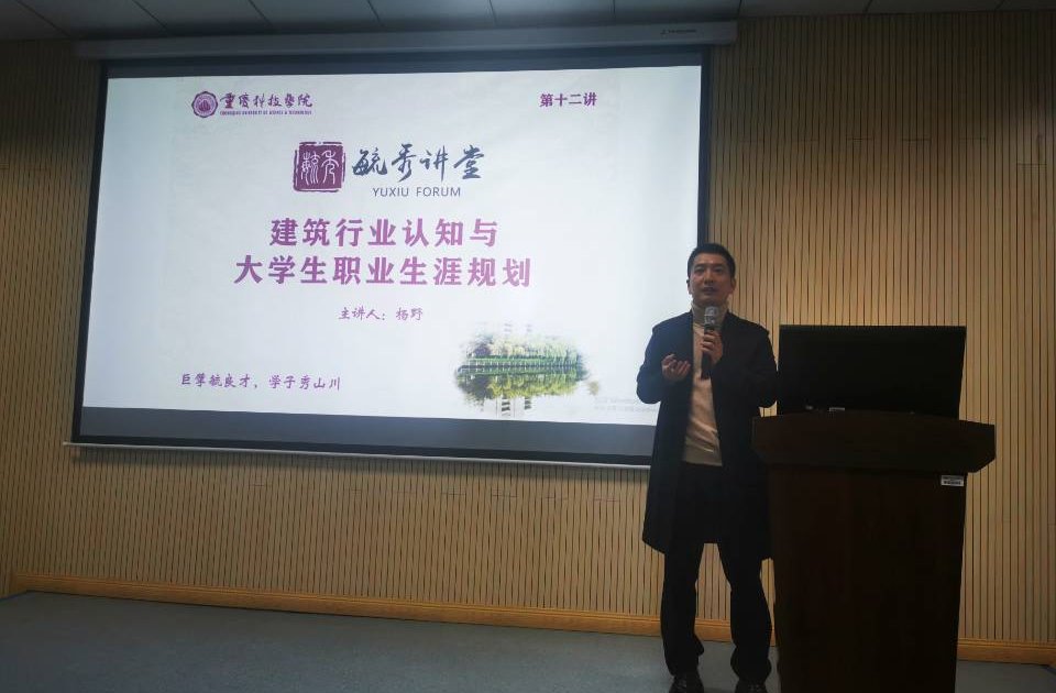 10月16日上午,“毓秀讲堂”第十二讲在大学生就业服务中心宣讲厅举行。本次讲座主题为《建筑行业认知与大学生职业生涯规划》,特邀深圳市建筑装饰(集团)有限公司助理总裁兼人力资源中心总经理杨野主讲,全校100余名师生聆听了本次讲座。