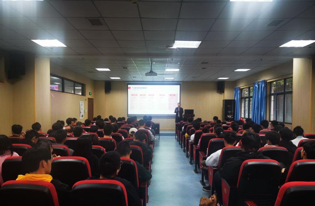 讲座过程中,杨野向大家介绍了大学生自我认知中的约哈里窗模型、冰山模型,并从自我气质、性格、兴趣和能力及价值观等方面进行了分析。同时,他重点讲述并分析了建筑装饰行业情况,包括产业链、行业特性、国家政策、行业知名企业发展布局及发展、岗位发展等前沿内容。最后,杨野进行职业生涯发展演示,以自己在建筑行业发展的经验帮助同学们制定职业发展规划。他鼓励同学们,正确进行自我认知,在做好个人职业生涯规划的基础上努力拼搏,奋勇向前。