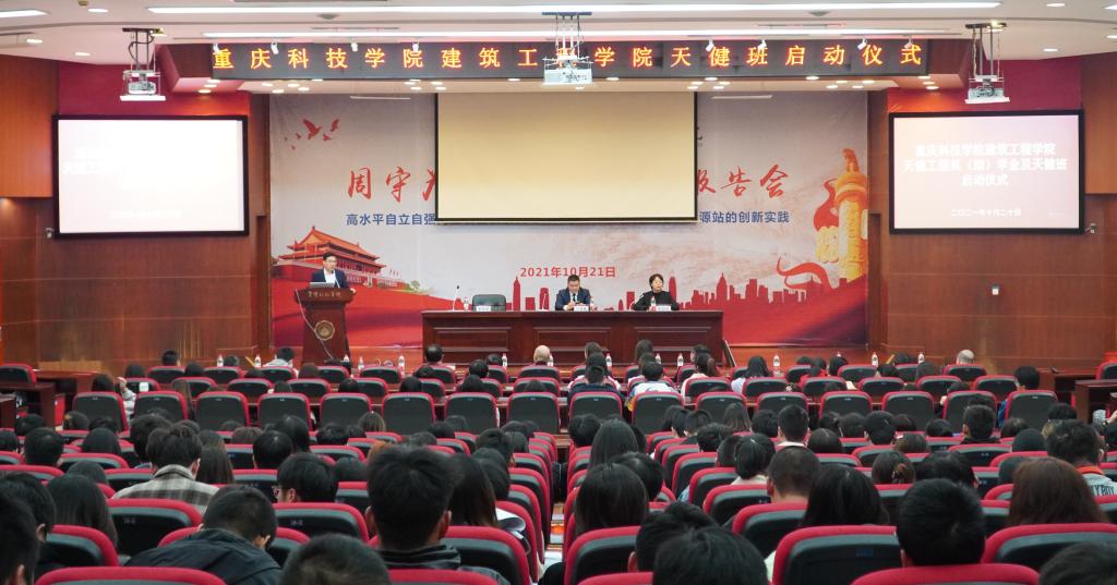 10月20日下午,建筑工程学院“天健班”启动仪式在学校学术报告厅举行。天健工程咨询(重庆)有限公司董事长兼总经理王成彬、天健会计师事务所重庆分所副总经理潘理科、天健工程咨询(重庆)有限公司常务副总经理刘新权,建筑工程学院院长晏致涛、党总支副书记陈皎娇、院长助理曾国明、建设管理系主任周兆银出席了启动仪式,天健工程咨询(重庆)有限公司相关部门负责人、建设管理系全体专业教师、学院2019、2020级工程管理、工程造价全体学生及其辅导员共计300余人参加了启动仪式。建筑工程学院院长晏致涛主持仪式。