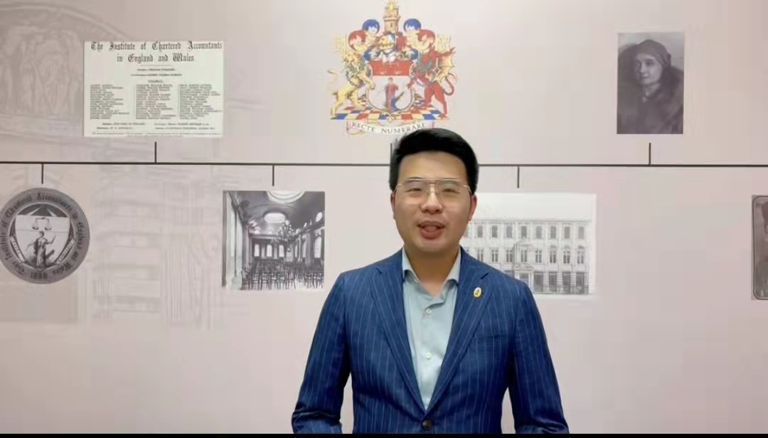 英格兰及威尔士特许会计师协会ICAEW的运营经理吴辰铉在线对新生送上祝福,并提出三点寄语:一是希望同学们终身学习,早日成为真正的特许会计师,共同推进财务行业的发展;二是拥抱变化,希望同学们做好拥抱变化的思想和能力准备;三是坚守职业道德和专业怀疑,进一步提升职业素养,增强职业能力。