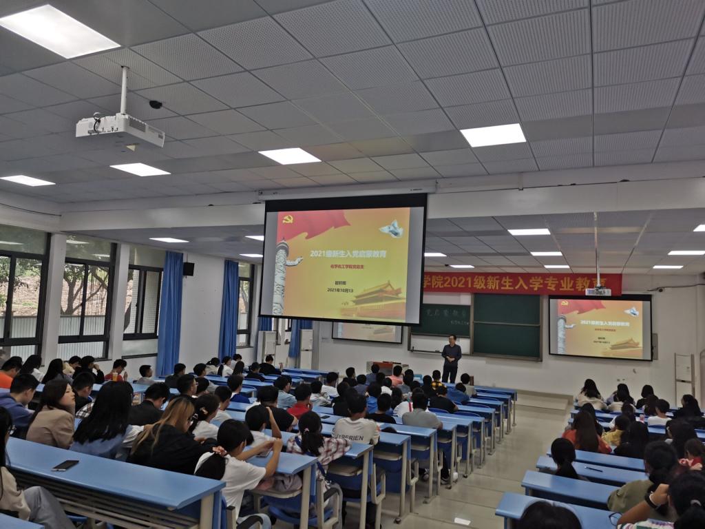 为帮助2021级新生更好的认识和理解党的基本知识,积极向党组织靠拢,10月13日下午,化学化工学院在厚德楼G101教室开展新生入党知识培训。学院组织员崔轩辉主讲,400余名新生参加了培训。