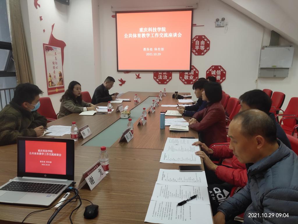 近日,公共体育教学工作交流座谈会在体育馆T206会议室召开。教务处、体育部各教研室和有关科室负责人参加会议。座谈会由体育部副部长张莹主持。