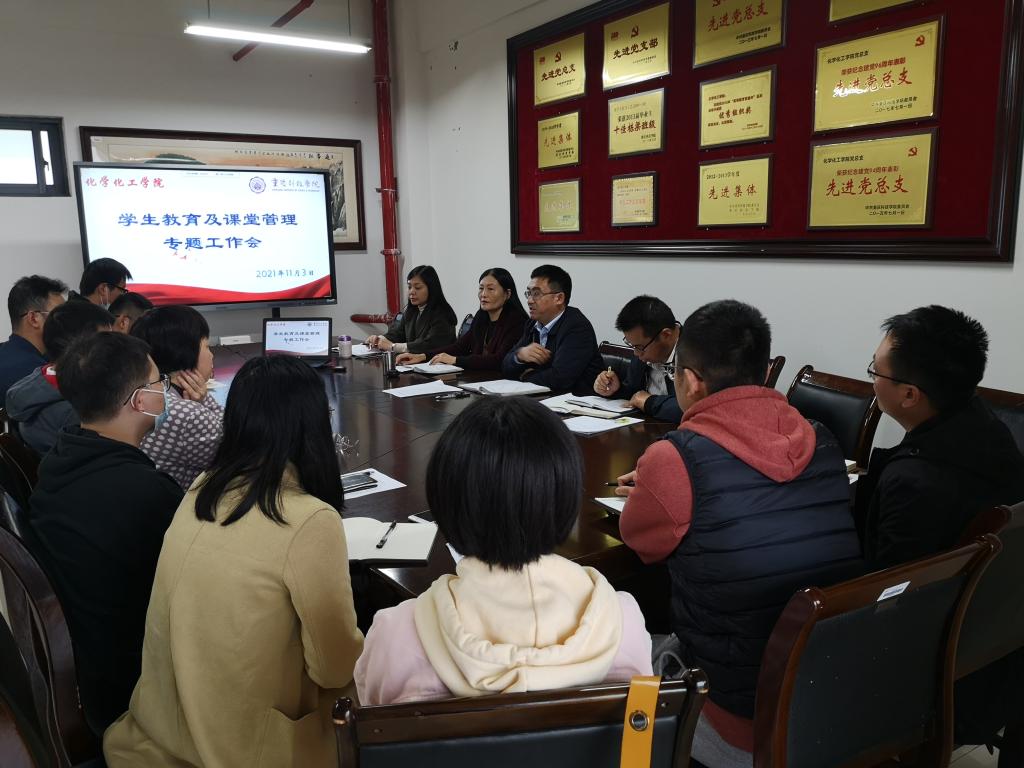 为扎实推进学生教育管理服务工作,确保学生工作平稳有序,化学化工学院于11月3日下午在笃行楼K1005会议室召开学生教育及课堂管理专题工作会,学院班子成员及全体专兼职辅导员参加了会议。