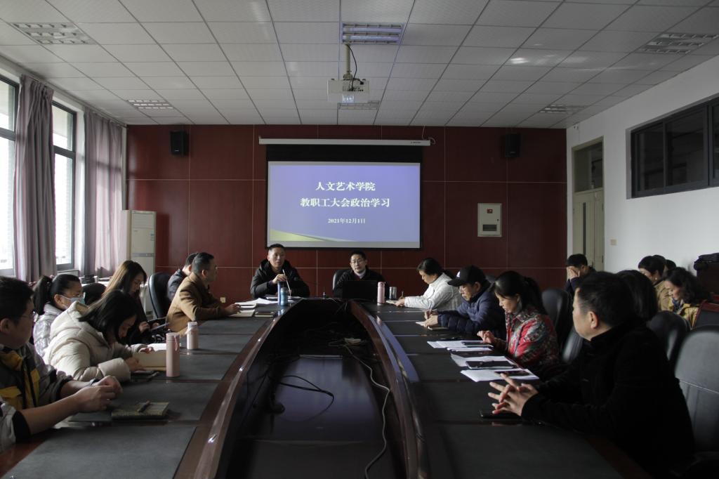 12月1日下午,人文艺术学院在厚德楼H512会议室召开教职工政治学习大会。解读学校《职称申报评审实施办法》和《绩效工资实施办法(修订)》两个文件,同时开展教职工教学技能创新大赛初选。副院长师会敏主持会议,学院全体教职工参加。