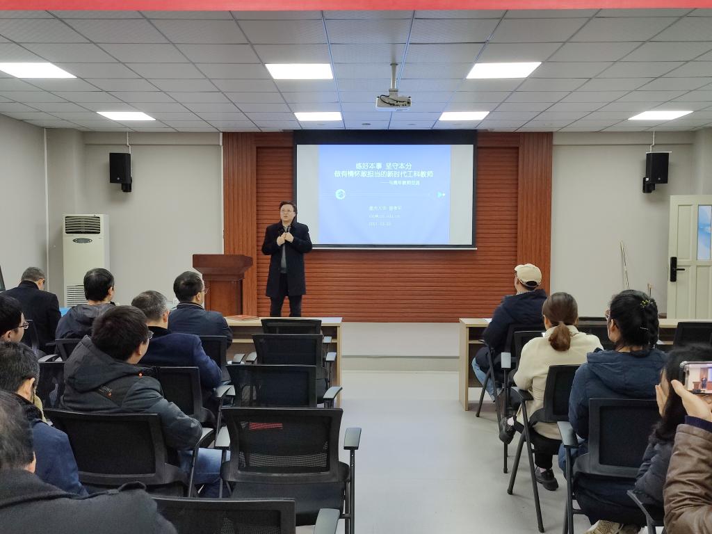 曾孝平针对工科教师面临的发展定位与规划的问题和困惑,结合自身的教学经历、新工科教育改革的现状,分别从新时代教师的职业能力、素养要求、业务要求、行为规范等几个方面跟大家做了详细交流。他指出,新时代工科教师不但要有高学术站位,更需要有高政治站位,他鼓励工科教师潜心求真,勇于创新,刻苦钻研业务,不断深化教学内容,提出新的教学方法和手段,真正成为学生的表率和榜样。