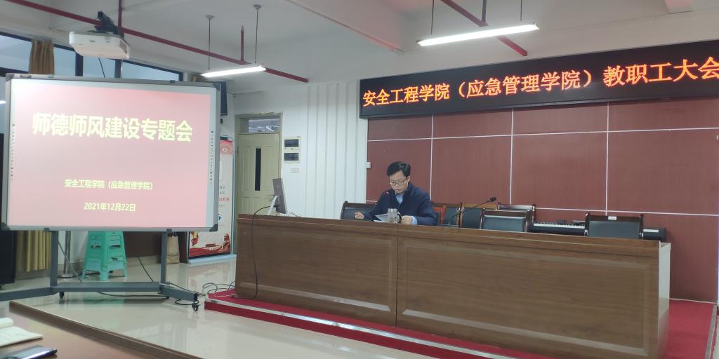 为继续深入贯彻落实全国教育大会精神和《中共中央国务院关于全面深化新时代教师队伍建设改革的意见》,进一步加强师德师风建设,12月22日下午,安全工程学院(应急管理学院)在K322召开师德师风建设专题会,会议由学院党总支书记方丰主持。