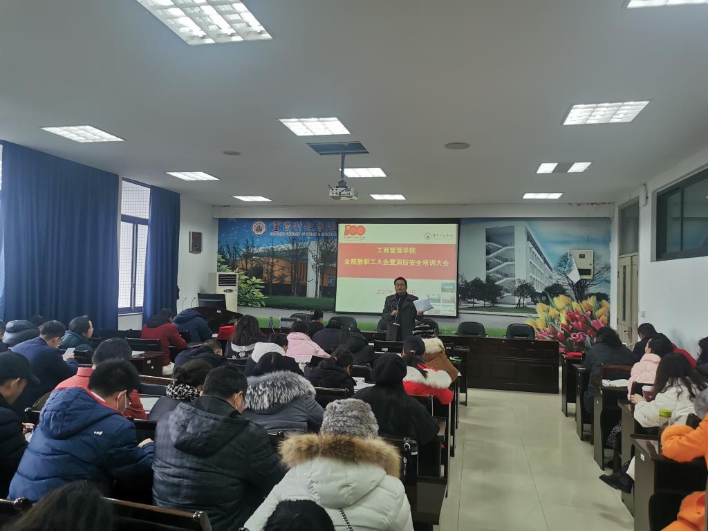 12月29日,工商管理学院在博学楼F312会议室召开全院教职工大会暨消防安全专题培训会。会议由学院党总支书记江燕玲主持,全院教职工80余人参加了会议。