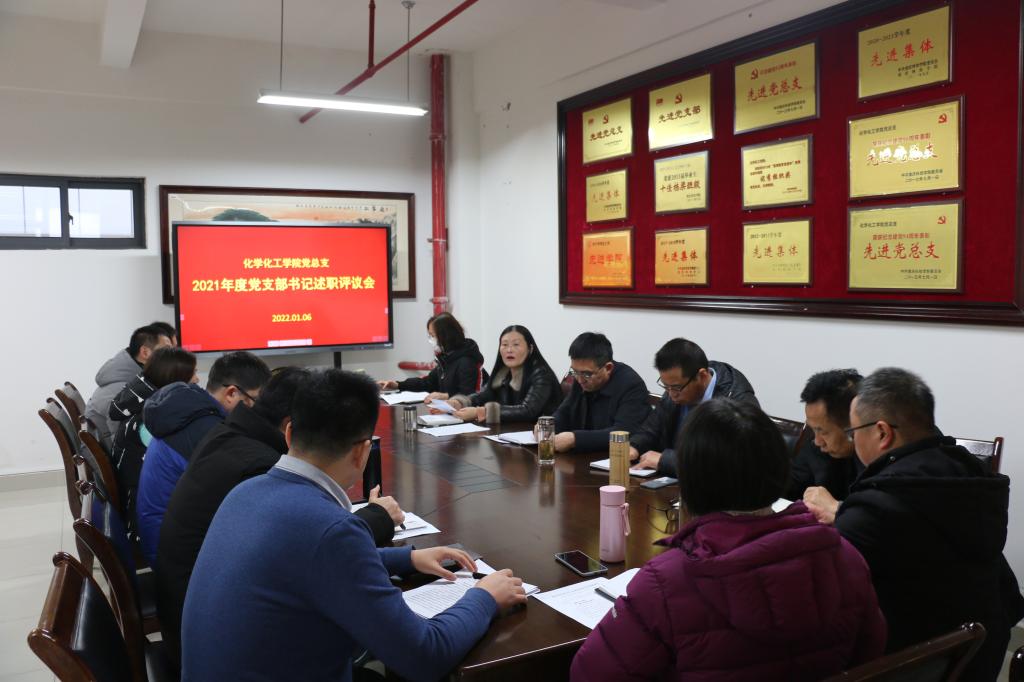2022年1月6日上午,化学化工学院党总支在笃行楼1005会议室召开2021年度党支部书记述职测评会。会议由党总支书记张莉主持,党总支委员和党支部书记参加会议。