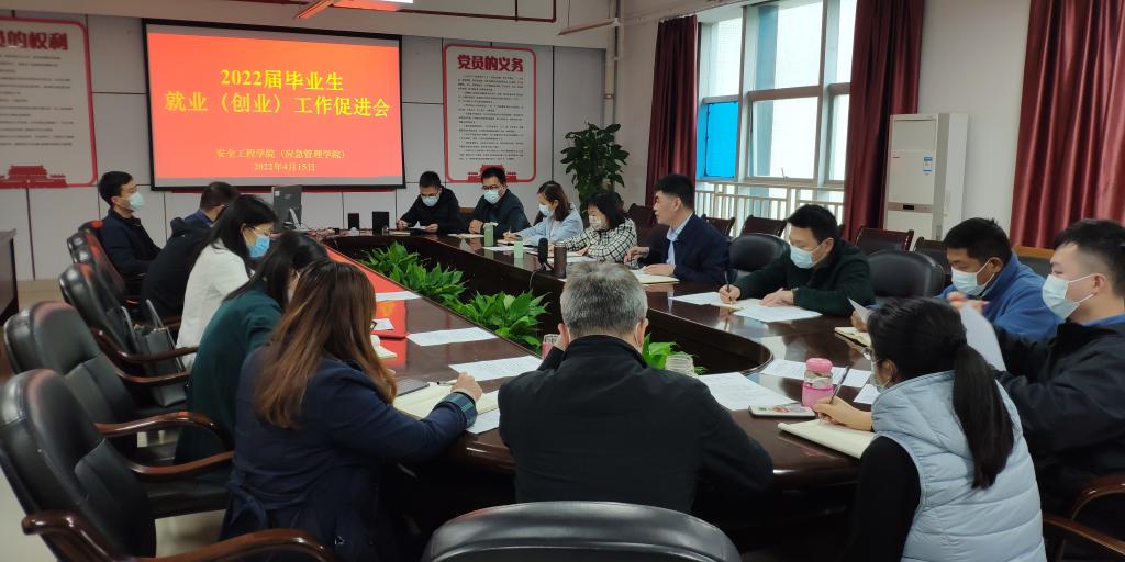 为提高毕业生就业质量,稳步推进毕业生就业创业工作,安全工程学院(应急管理学院)于4月15日下午在笃行楼312会议室召开了2022届毕业生就业创业工作促进会。学院全体班子成员、组织员、院长助理、三级机构负责人、就业专干及毕业班辅导员参加会议。会议由学院党总支副书记、常务副院长李志军主持。