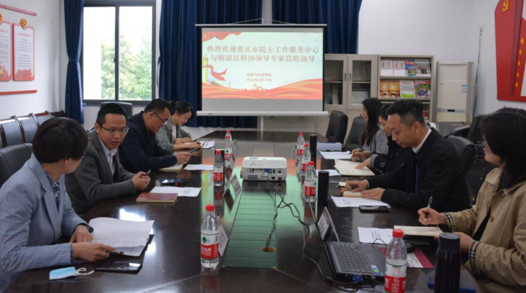 近日,重庆市院士工作服务中心主任秦定龙、铜梁区科学技术协会党组书记柳建华、主席陈恒煦等一行到法政与经贸学院进行指导交流。法政与经贸学院党总支书记田懿、副院长陶宇及部分同志参加了会议。