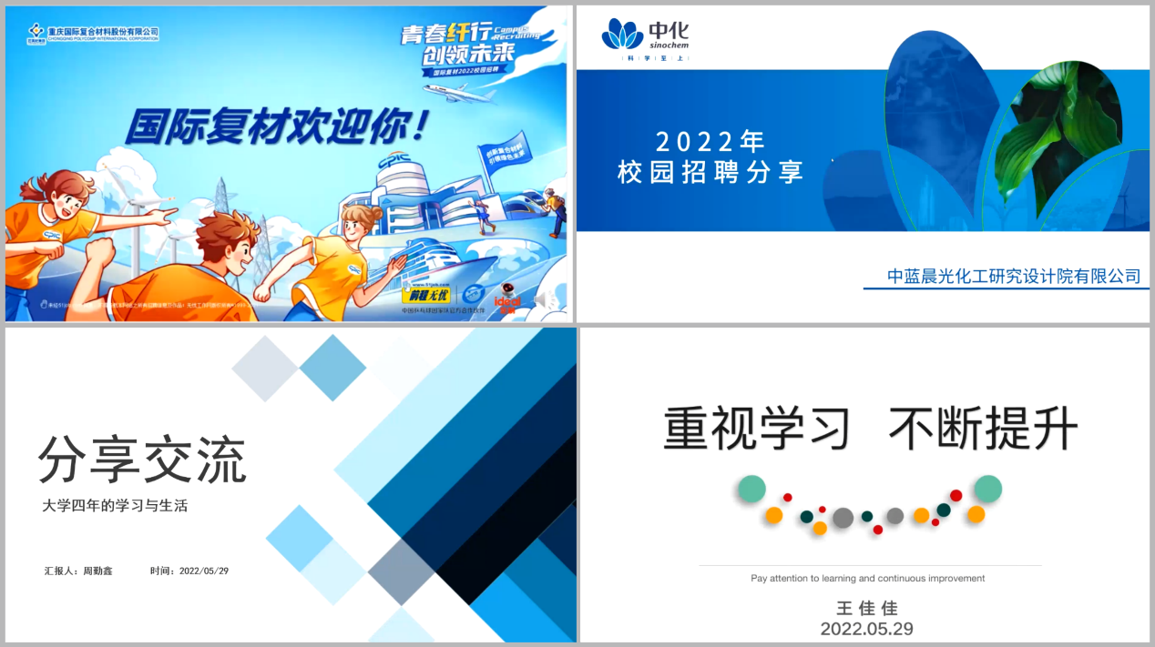 在所有专业教师的共同努力下,复合材料与工程专业2022届就业去向落实率达到目前95.35%。通过开展本次生涯规划和就业指导活动,不同年级的同学们对当前就业形势有了更加深入的认识,为今后合理规划个人生涯打下了基础。