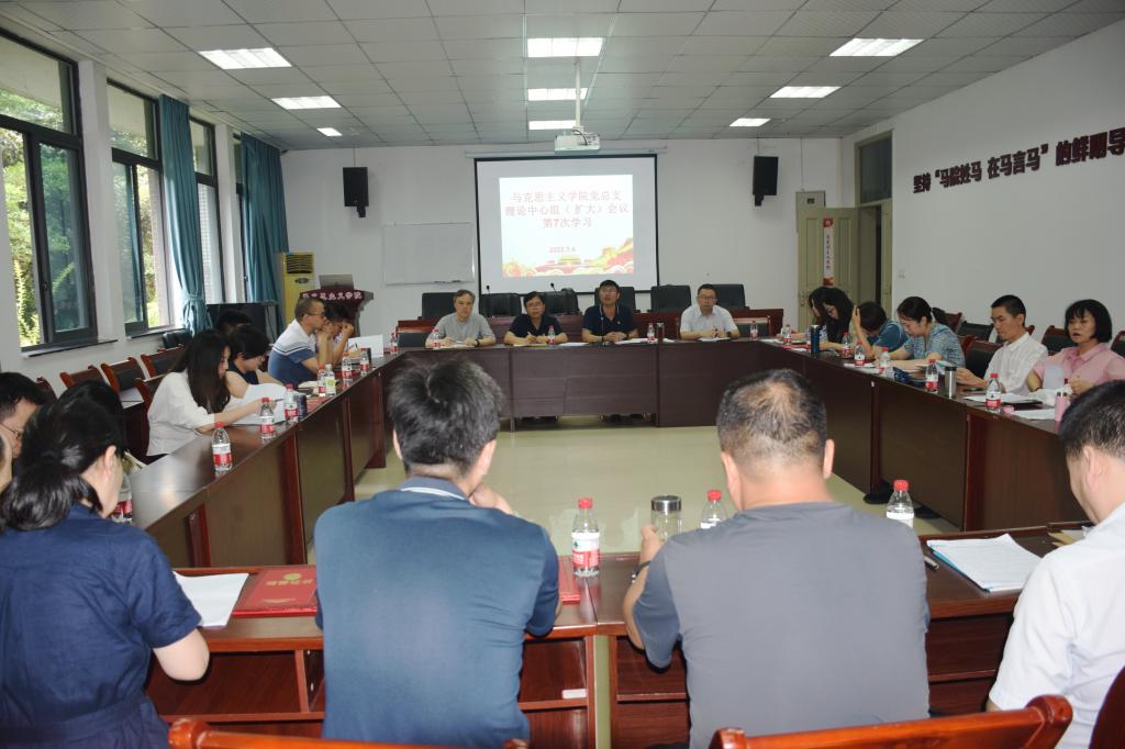 7月4日上午,马克思主义学院党总支理论学习中心组在博学楼F112会议室开展2022年第7次集体学习会议(扩大),集中学习《中国共产党章程》和习近平总书记关于党的百年奋斗重大成就和历史经验的重要论述,重温党的历史、牢记初心使命。学院党总支委员、各党支部委员、三级机构负责人、院级优秀共产党员和优秀党务工作者参加了学习,学院党总支书记、院长张劲主持会议。