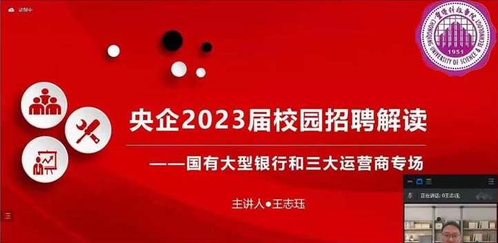 10月5日,智能技术与工程学院以线上会议的形式举行“解读央企校园招聘”专题就业培训会。会议邀请了国家一级企业人力资源管理师王志珏博士主讲。