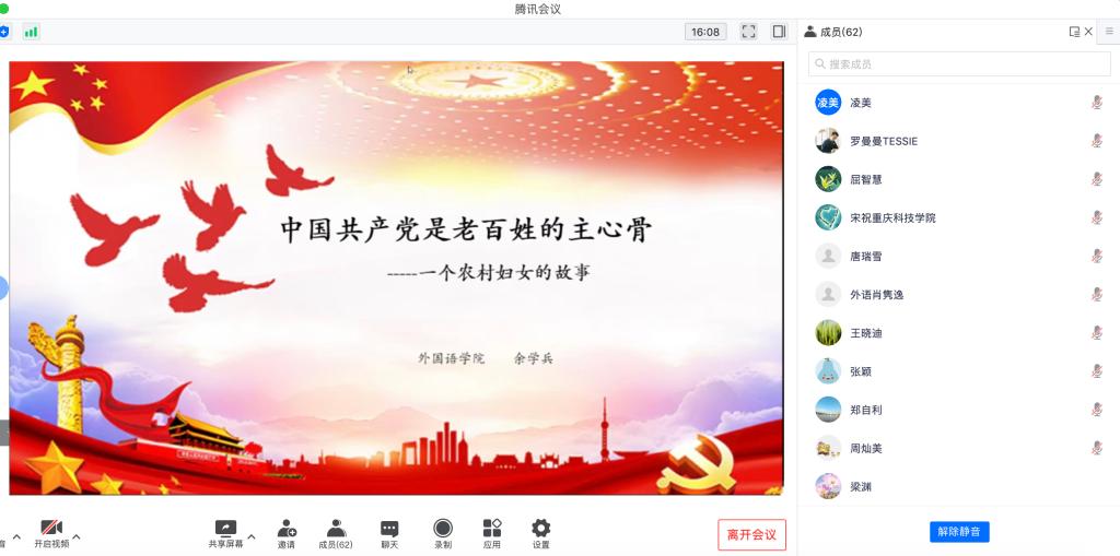 11月11日下午,外国语学院党总支在线上开展“中国共产党是老百姓的主心骨”专题党课学习。党课由学院党总支书记余学兵主讲,总支全体党员参加了学习。