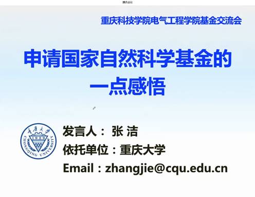 为进一步增强电气工程学院教师申报国家自然科学基金的能力,提高申请书的撰写水平,根据“电气工程学院国家自然(社会)科学基金申报工作实施方案”的要求,12月16日下午,电气工程学院通过腾讯会议网络平台举办了国家自然科学基金申报讲座会。重庆大学光电工程学院博士生导师张洁教授应邀作了题为“申请国家自然科学基金的一点感悟”的学术讲座。电气工程学院相关教师和部分研究生参加了此次讲座会。电气工程学院院长唐德东教授主持了讲座会。