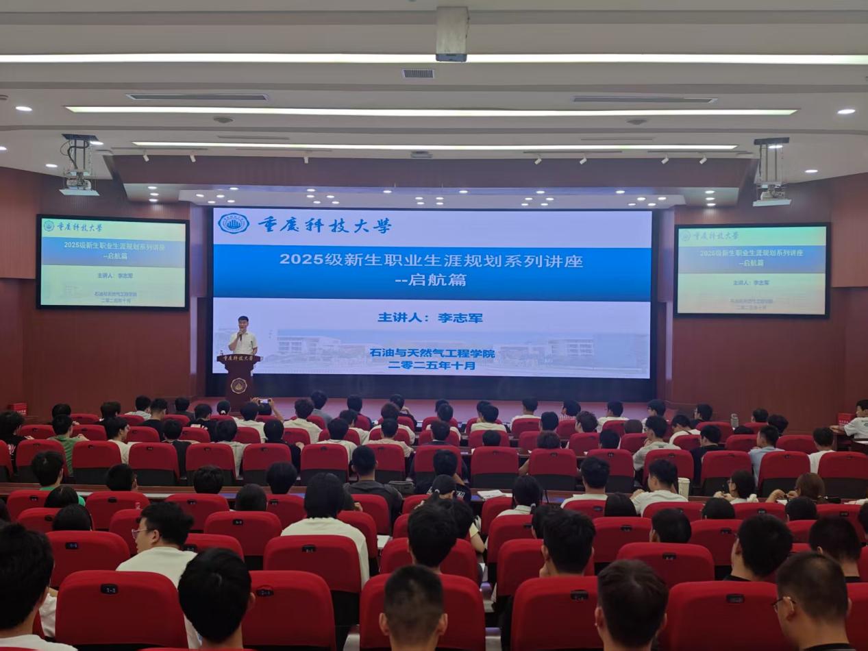 近日,石油与天然气工程学院2025级新生《生涯规划》第一课"启航篇"在学术报告厅顺利开课。学院院长李志军以“大学生活漫谈”为题,为资源勘查工程、地质学、勘查技术与工程三个专业240名新生点亮了大学生涯规划之灯。