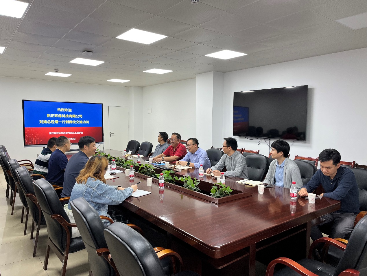 10月13日下午,我校优秀校友、重庆阳正环保科技公司总经理刘杨一行来校交流。交流会在砺志楼L342会议室举行。冶金与动力工程学院院长戴庆伟,冶金与动力工程学院、化学化工学院、土木与水利工程学院相关专业教师参加会议,交流会由曹鹏军教授主持。