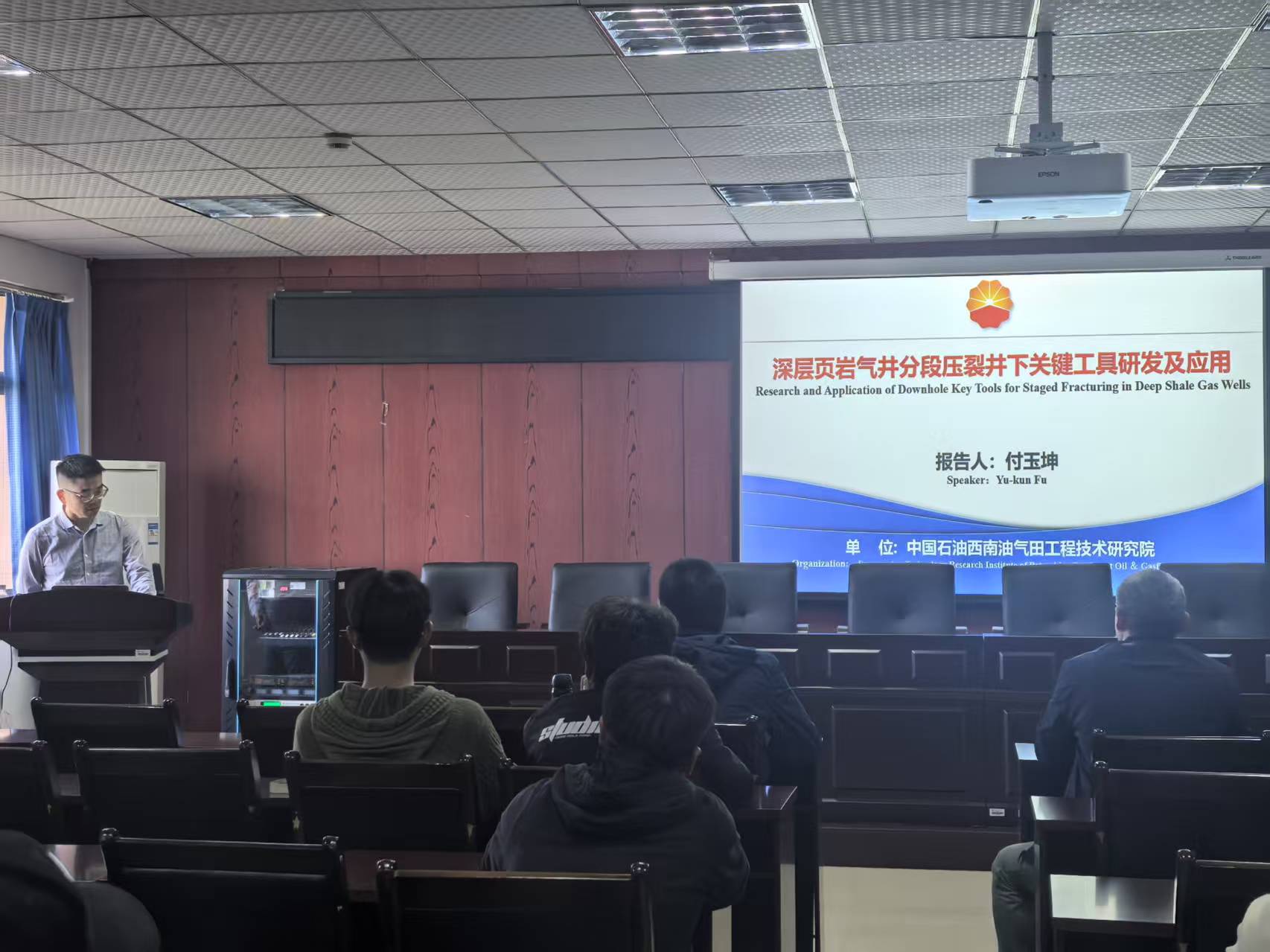 10月23日下午,中国石油西南油气田工程技术研究院二级专家、高级工程师付玉坤博士受邀做客我校,在机械与智能制造学院励志楼L301会议室开展深层页岩气井分段压裂井下关键工具研发专题学术讲座。学院组织相关方向教师以及研究生、本科生参与本次讲座。