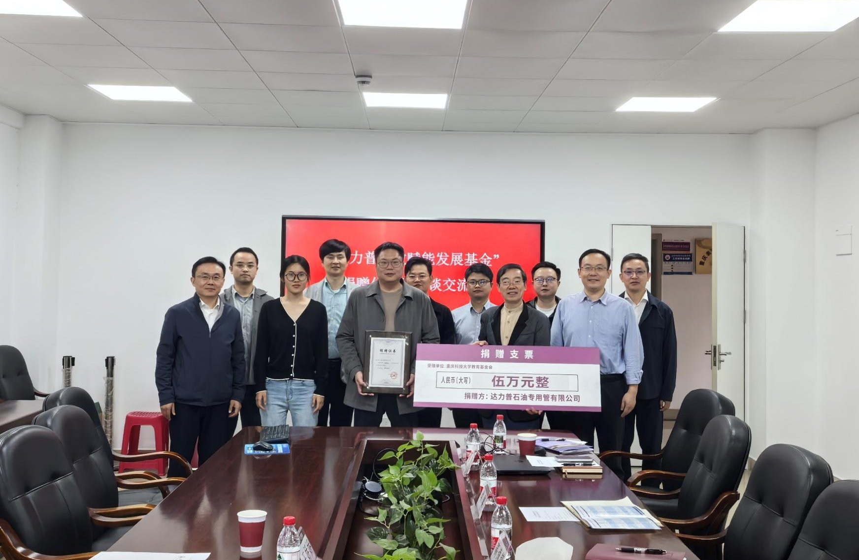 10月23日,达力普石油专用管有限公司向我校捐赠仪式暨座谈交流会顺利举行。此次达力普公司向学校捐赠人民币5万元,专项设立“达力普誉教赋能发展基金”,用于支持学校人才培养、专业建设、师生活动和奖教金等项目,为学校教育事业发展注入新动力。达力普石油专用管有限公司副总经理、我校2004级数控技术及应用专业校友王奎,公司招聘专员王娇娇出席仪式暨交流会。学校校友会秘书长邱正阳、冶金与动力工程学院负责人及系主任参加会议。会议由冶金与动力工程学院院长戴庆伟主持。