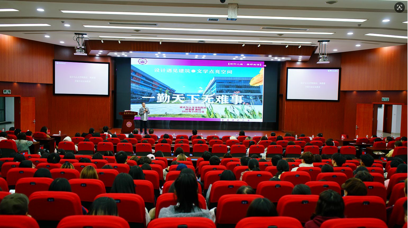 为引导2025级新生筑牢理想信念、绘制成长蓝图,扣好大学学习与生活的“第一粒扣子”,10月22日晚,设计与人文学院“设计遇见建筑,文学点亮空间”新生专业认知教育活动在学术报告厅举行。学院班子成员、系主任、教师代表、新生辅导员以及2025级全体新生参与了此次活动,活动由学院副院长师会敏主持。