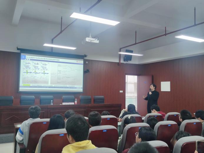 报告结束后,杨秀培与现场师生围绕材料设计、机制探究等科研关键问题展开了深入交流与讨论。参会师生踊跃提问、积极互动,现场学术氛围热烈,掌声持续不断。此次报告紧扣研究前沿,既展现了MOF作为诺奖材料的独特应用价值,也有效开阔了师生科学视野,对我院学科发展与合作交流起到了积极的推动作用。