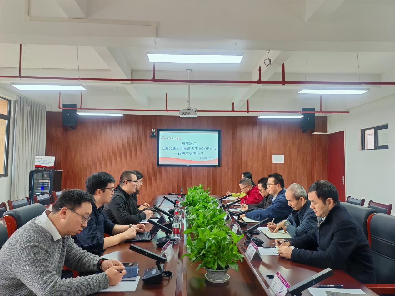 会上,邱会东代表学院对研究院一行的到来表示欢迎并详细介绍了学校的办学理念、发展历程,以及学院在学科建设、师资力量、科研成果、人才培养等方面的核心优势与特色,并提及学院在人工智能与化工交叉领域的初步探索与需求。上海交通大学重庆人工智能研究院一行全面介绍了研究院的成立背景、核心研发方向、人工智能数据分析平台等技术优势,以及在产学研合作中的平台资源整合成效,双方就各自发展定位与优势领域展开深入沟通。