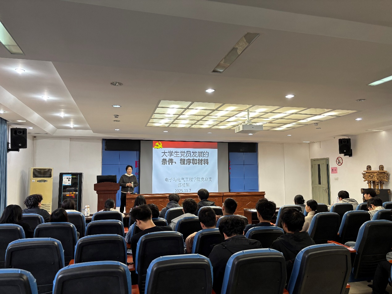 11月7日下午,电子与电气工程学院党总支在逸夫楼I413-3会议室开展了第四期入党积极分子预培训,培训班全体学员参加培训。