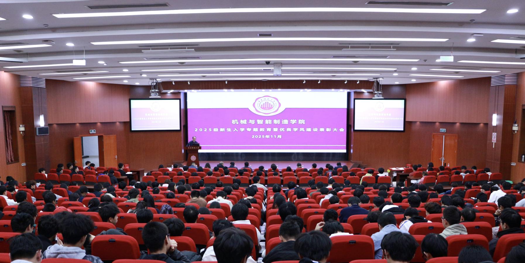 为厚植优良学风,筑牢育人根基,助力2025级新生精准锚定成长航向,快速融入大学育人环境。11月14日,机械与智能制造学院在学术报告厅举行2025级新生入学专题教育暨优良学风建设表彰大会。学院班子成员、三办主任、各系主任、2025级辅导员及全体新生齐聚一堂,共赴成长之约。会议由学院党总支副书记薛善增主持。