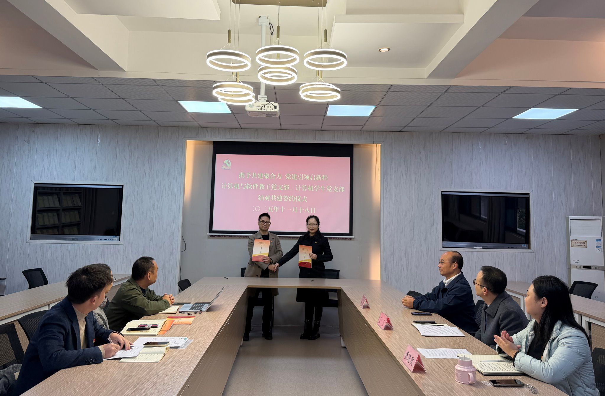 仪式上,计算机与软件教工党支部分别与计算机学生党支部、软件学生党支部共同签署了结对共建协议。根据协议内容,共建双方将成立共建工作联系小组,建立常态化沟通机制,定期开展联合学习、主题实践、组织生活等活动。在党员培养方面,教职工党支部将精准对接学生党支部需求,选派正式党员担任培养联系人和入党介绍人,并承担具体的学生党员培养和入党积极分子考察任务。在育人实践方面,将充分发挥教师党员的专业优势,在学业指导、科研训练、项目开发、就业创业、心理关怀等方面为学生提供全方位支持,共同破解学风建设、就业促进等领域的难题。