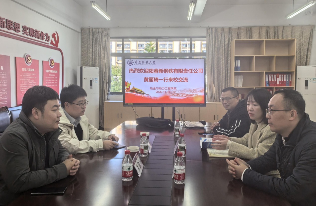 11月20日上午,阳春新钢铁有限责任公司人力资源部黄思琦部长一行来校交流,交流会在砺志楼L331会议室举行。冶金与动力工程学院院长戴庆伟、党总支副书记洪黎及相关专业教师参加会议,会议由洪黎主持。