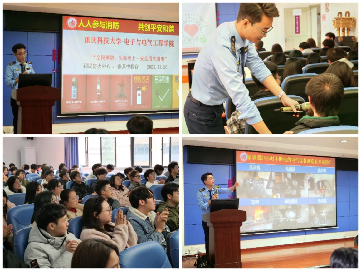 为切实强化学院学生消防安全意识,推动专业知识与安全实践深度融合,11月26日,电子与电气工程学院邀请重庆利民防火中心教官团队,为学生带来一场兼具专业性与实用性的消防知识专题讲座。学院全体辅导员及百余名学生代表参与学习。