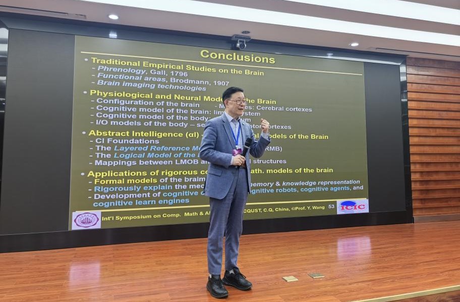 王迎旭作主旨演讲,他在报告中开宗明义,强调了计算数学与人工智能之间日益紧密的共生关系。根据智能科学(Intelligence Science,IS)的分层智能模型(Hierarchical Intelligence Model,HIM),王迎旭介绍了有关自主智能(Autonomous AI,AI*)的研究发现和理论进展。以表征为导向的知识系统与具备推理、归纳、创造力的一般智能之间的差异性,将促进当代“认知计算机”理论的发展和下一代认知机器人的出现。智能数学(Intelligent Mathematics,IM)是这一过程的理论基础,用于免训练或自主机器智能。王迎旭的精彩报告为自主智能提供了全新的理论框架和研究视野。