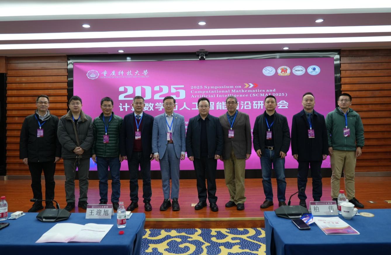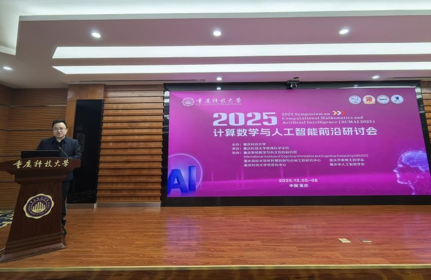 12月5日至12月6日,由我校主办,数理科学学院具体承办,重庆智能数学与自主智能研究院、重庆高校半导体智慧照明与应用工程研究中心、重庆科技大学信息化中心、重庆市系统工程学会、重庆市人工智能学会等单位协办的“2025计算数学与人工智能前沿研讨会(2025 Symposium on Computational Mathematics and Artificial Intelligence,SCMAI 2025)”在行政楼105会议室召开。研讨会以“促进基础学科与前沿科技的交叉融合”为主题,探索计算数学作为核心驱动力在人工智能发展中的关键作用,邀请了多名来自国内外的顶尖专家和学者。重庆科技大学党委常委、副校长柏伟教授代表主办单位重庆科技大学致辞,数理科学学院院长彭军教授、重庆智能数学与自主智能研究院院长王迎旭教授参加本次会议。研讨会吸引了来自数学、计算机科学、统计学、数据科学等多个学科专业的70余名师生踊跃参与,现场气氛热烈,互动频繁。