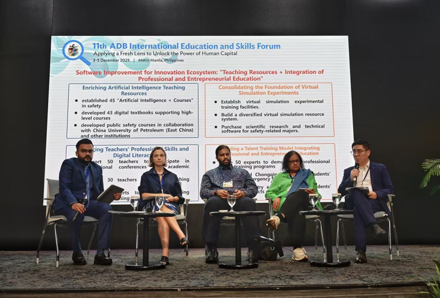 2025年12月3日至5日,受亚洲开发银行邀请,学校教务处处长秦跃林和计划财务处处长翟小英代表学校参加了在亚洲开发银行总部菲律宾马尼拉举办的第11届国际教育与技能论坛,并就亚洲开发银行项目——“重庆创新与人力资源发展示范项目”执行情况作大会主题发言。本次论坛以“新视角释放人力资源的力量”为主题,聚焦在教育大变革背景下如何激发教育数字化转型潜力,以实现包容、绿色、创新、技能、就业等方面的可持续发展。