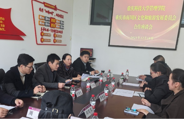 为搭建合作交楼桥梁,推动文旅产业人才培养与行业发展深度融合,12月10日下午,管理学院与重庆南川市文化与旅游委员会合作交流座谈会在博学楼F310会议室召开。重庆南川市文化与旅游委员会副主任田兰,重庆金佛山山水文旅发展集团、重庆悦景文化旅游发展有限公司、南川区文广演出有限公司相关负责人,学院党总支书记李旭东、院长江燕玲、副院长吕奇光、组织员刘星以及旅游管理系、MTA教育中心教师代表参加座谈。会议由旅游管理系主任唐斌主持。